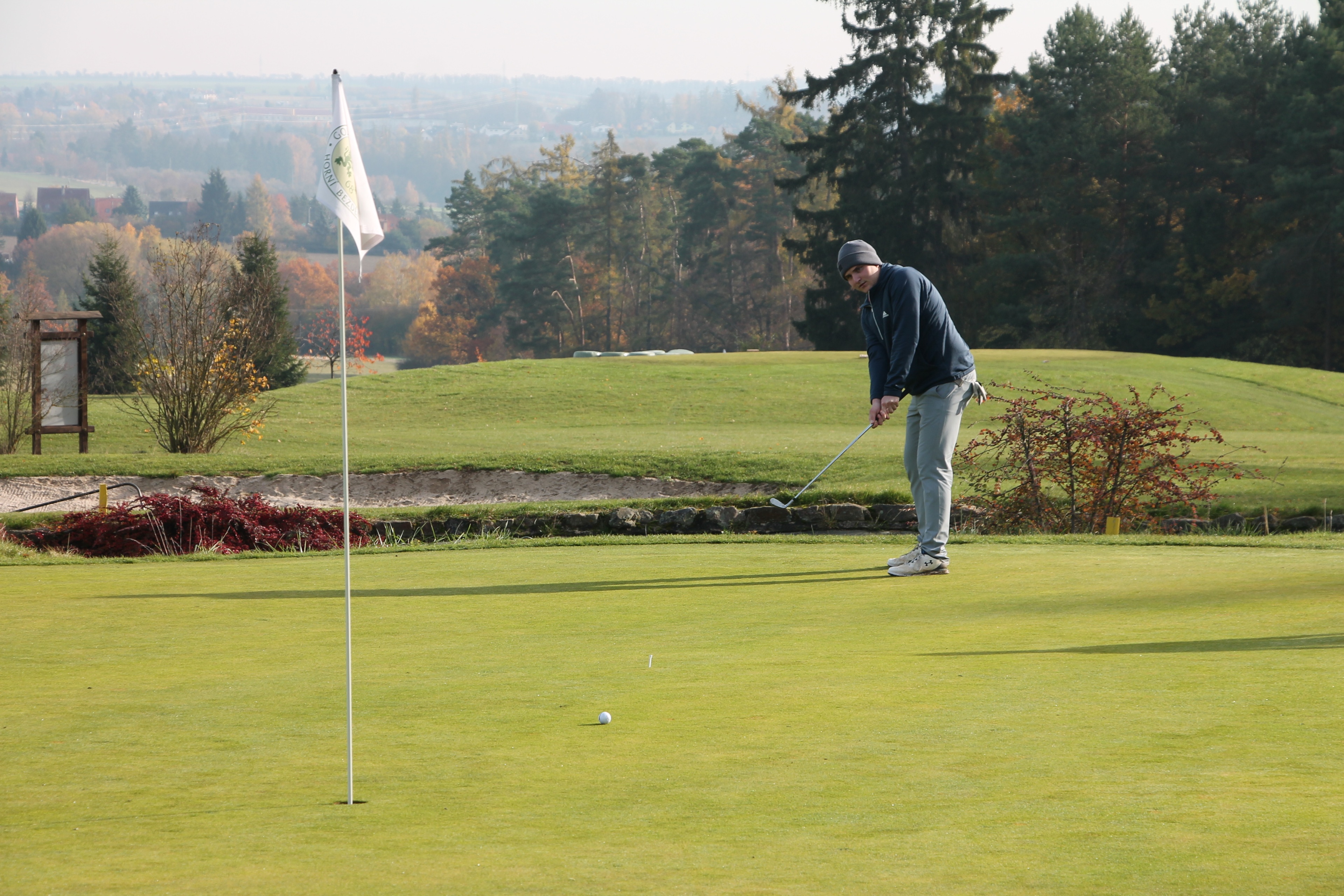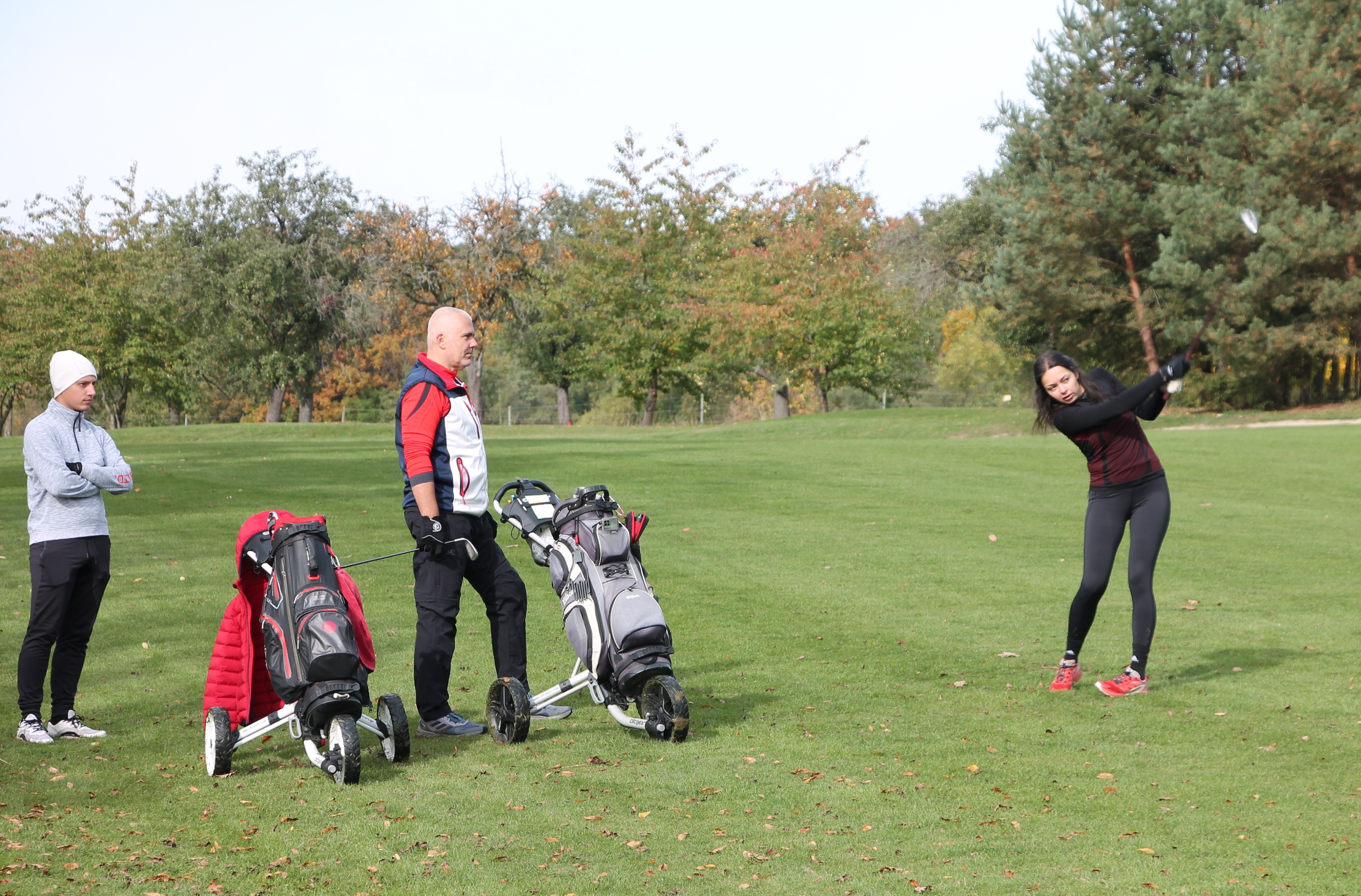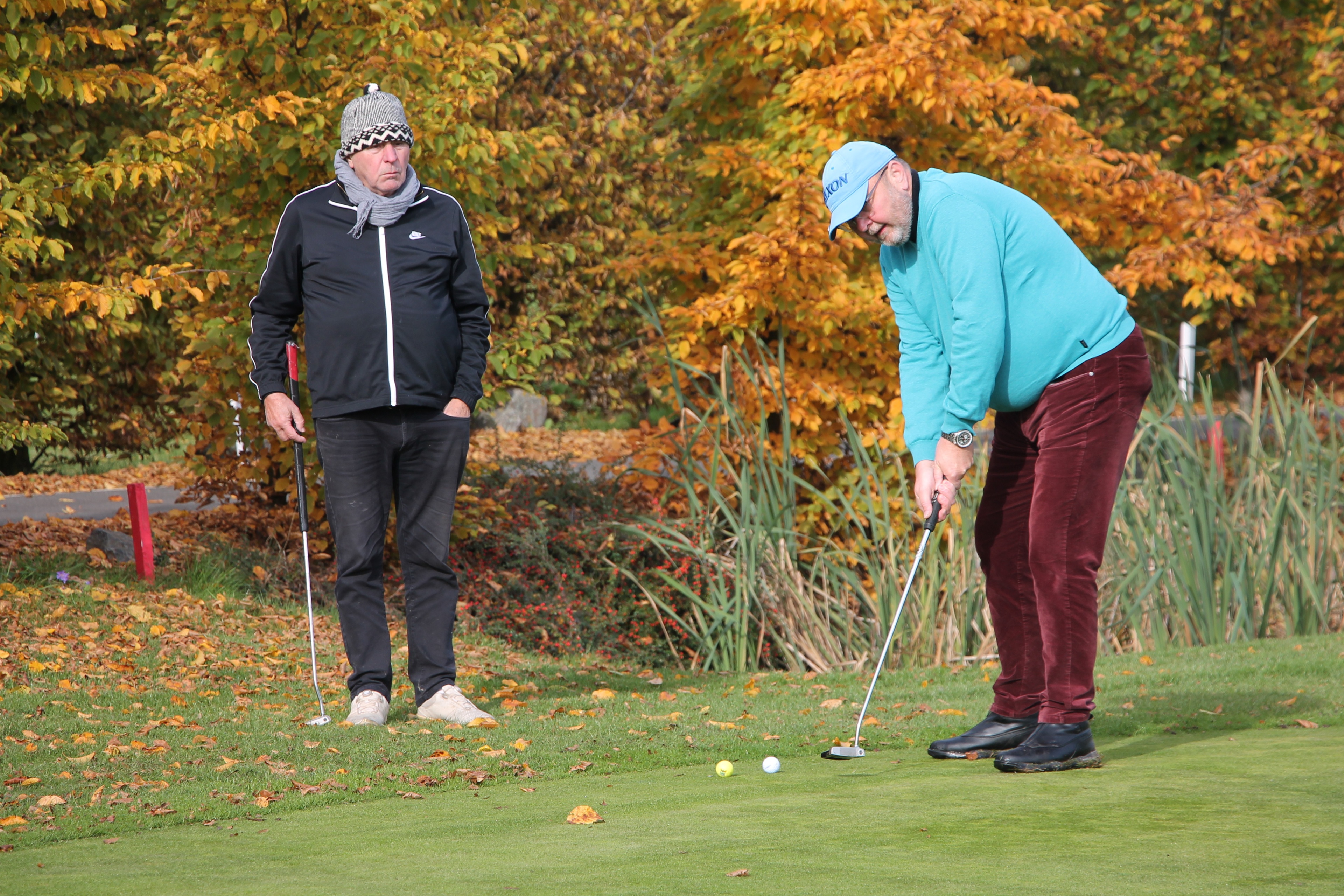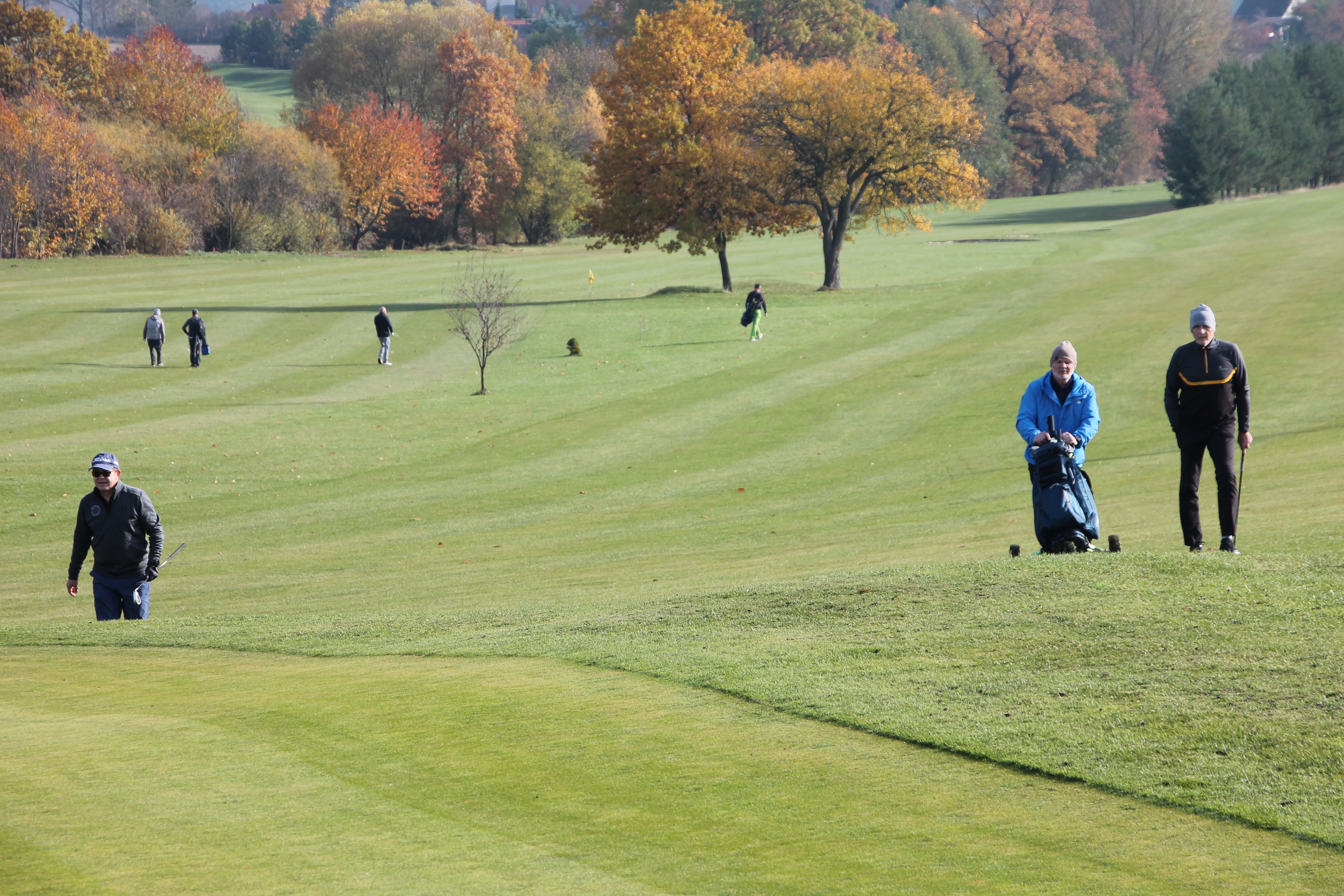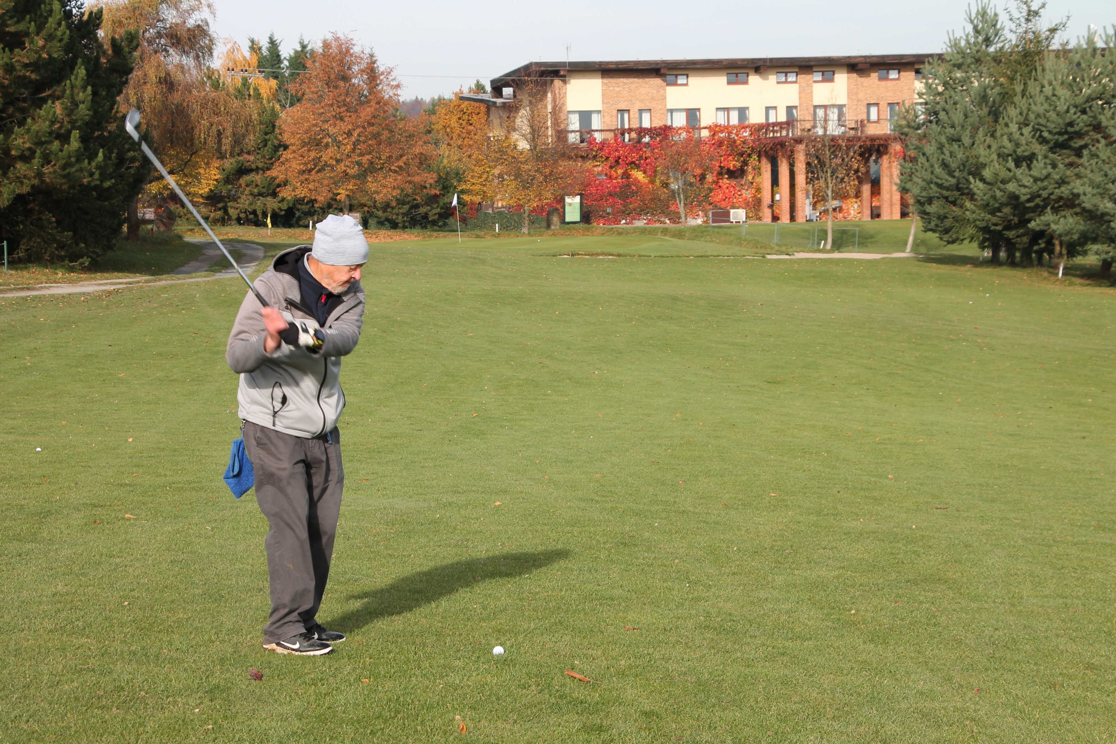 V neděli 19. října jsme odehráli na Botanice podzimní turnaj tří holí ve formátu Texas Scramble dvojic. Start byl v 10.00 dopoledne, za účasti celkem 34 hráčů tvořících 17 soutěžních dvojic se hrálo na 12 jamek. Počasí se vydařilo: ranní jinovatka pokrývající hrací plochy před desátou hodinou roztála a po celou dobu turnaje svítilo příjemné podzimní slunce. Teploměr sice ukazoval něco pod deset stupňů Celsia, ale díky slunci nebylo tak chladno, jak by se mohlo zdát.