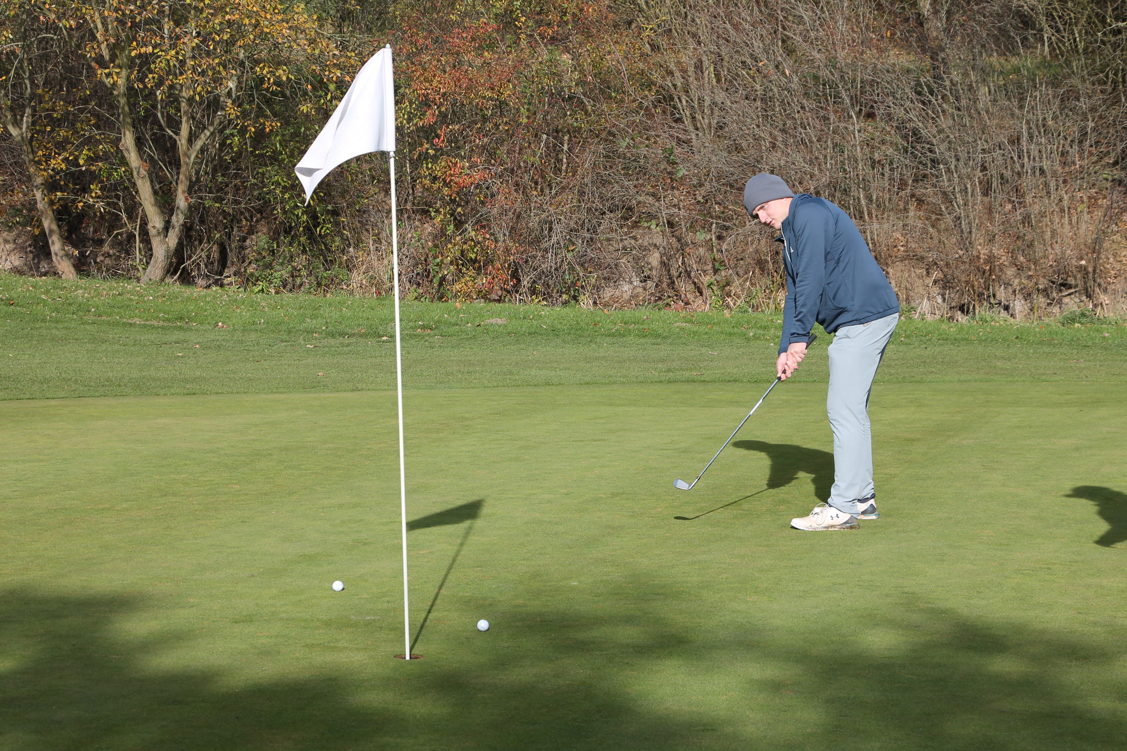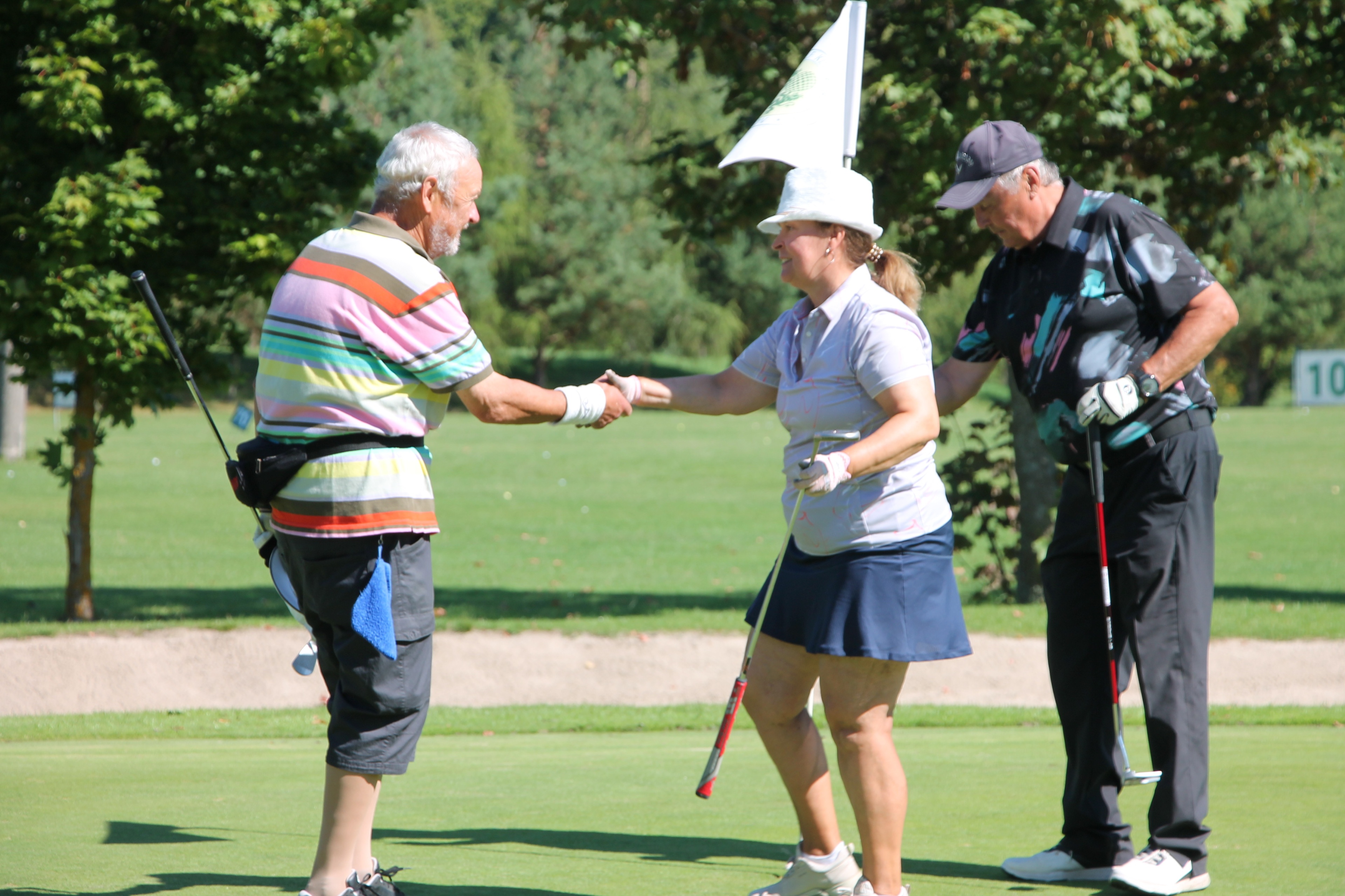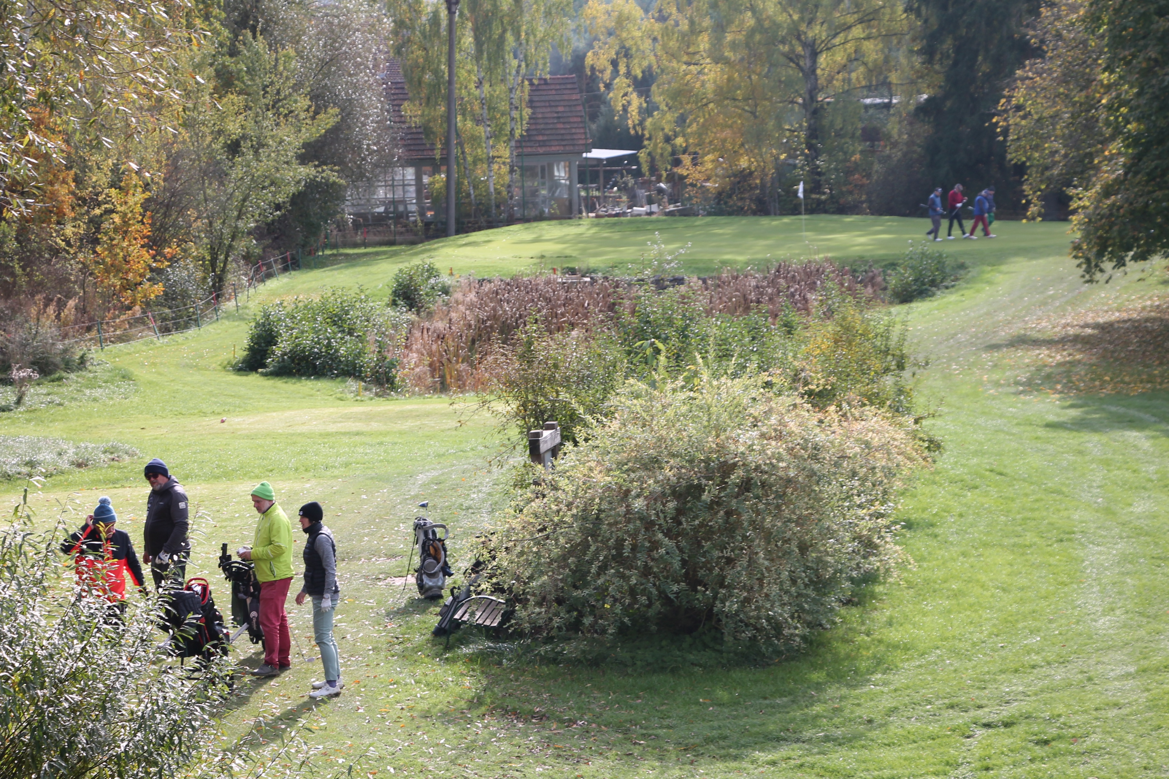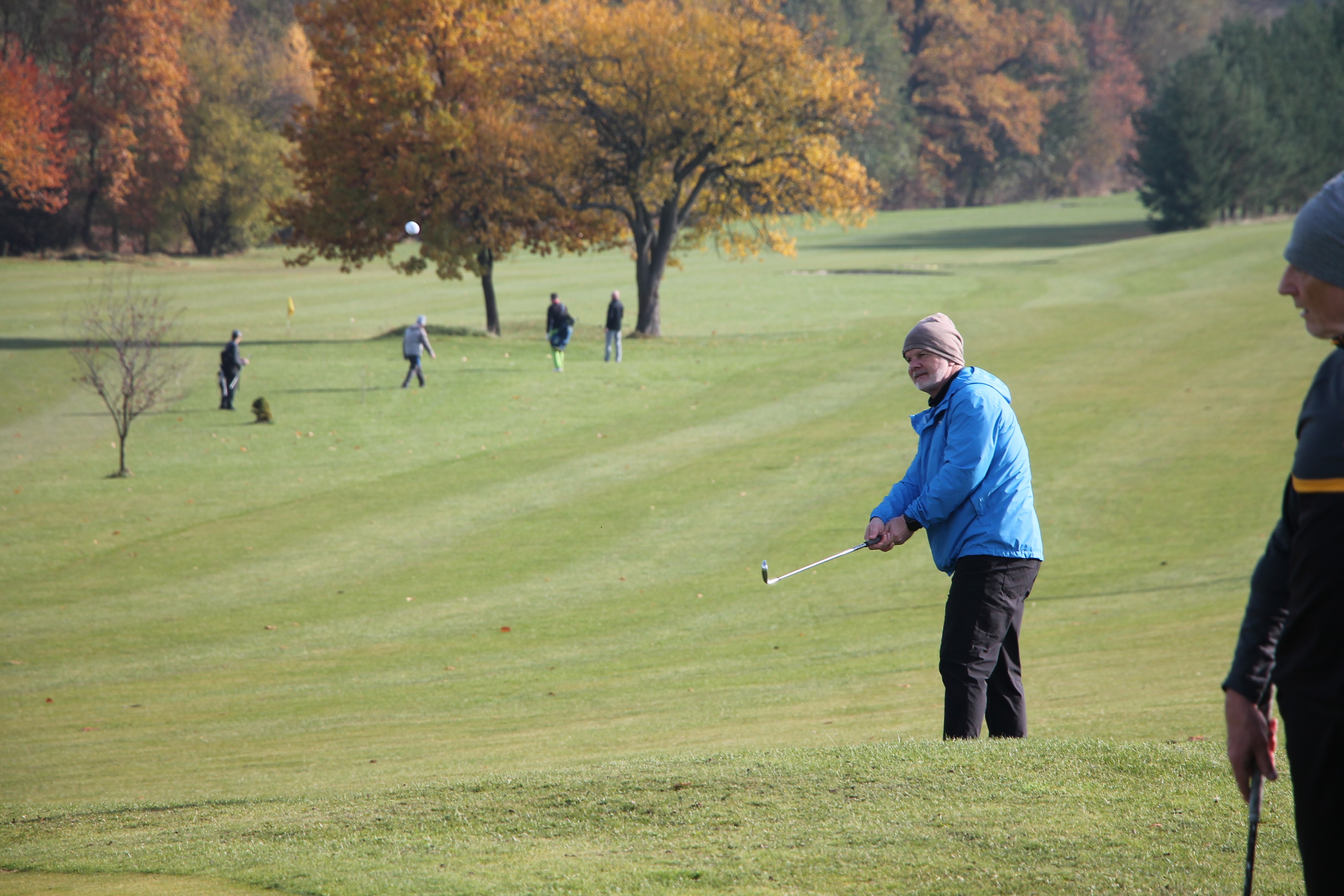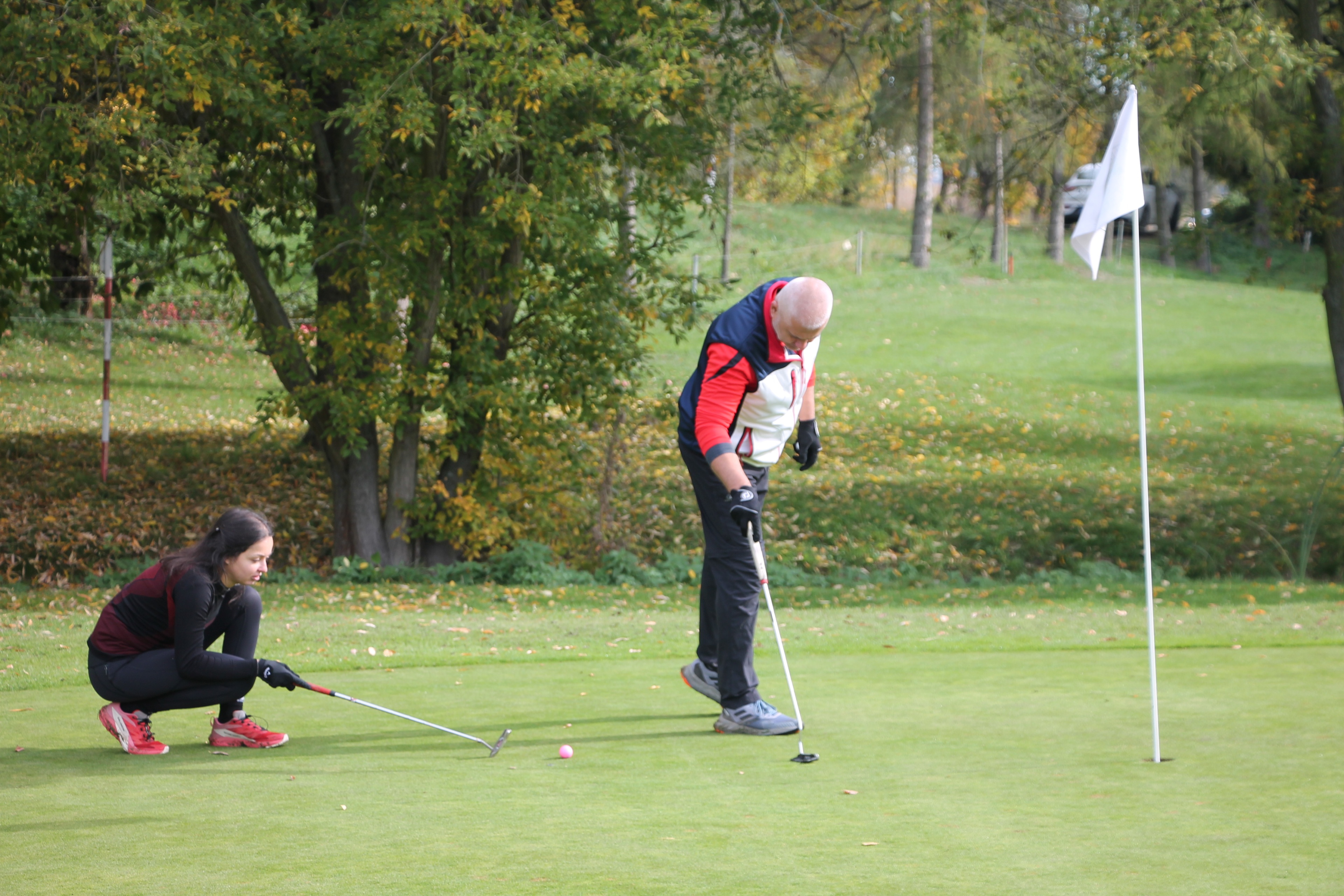 V neděli 19. října jsme odehráli na Botanice podzimní turnaj tří holí ve formátu Texas Scramble dvojic. Start byl v 10.00 dopoledne, za účasti celkem 34 hráčů tvořících 17 soutěžních dvojic se hrálo na 12 jamek. Počasí se vydařilo: ranní jinovatka pokrývající hrací plochy před desátou hodinou roztála a po celou dobu turnaje svítilo příjemné podzimní slunce. Teploměr sice ukazoval něco pod deset stupňů Celsia, ale díky slunci nebylo tak chladno, jak by se mohlo zdát.